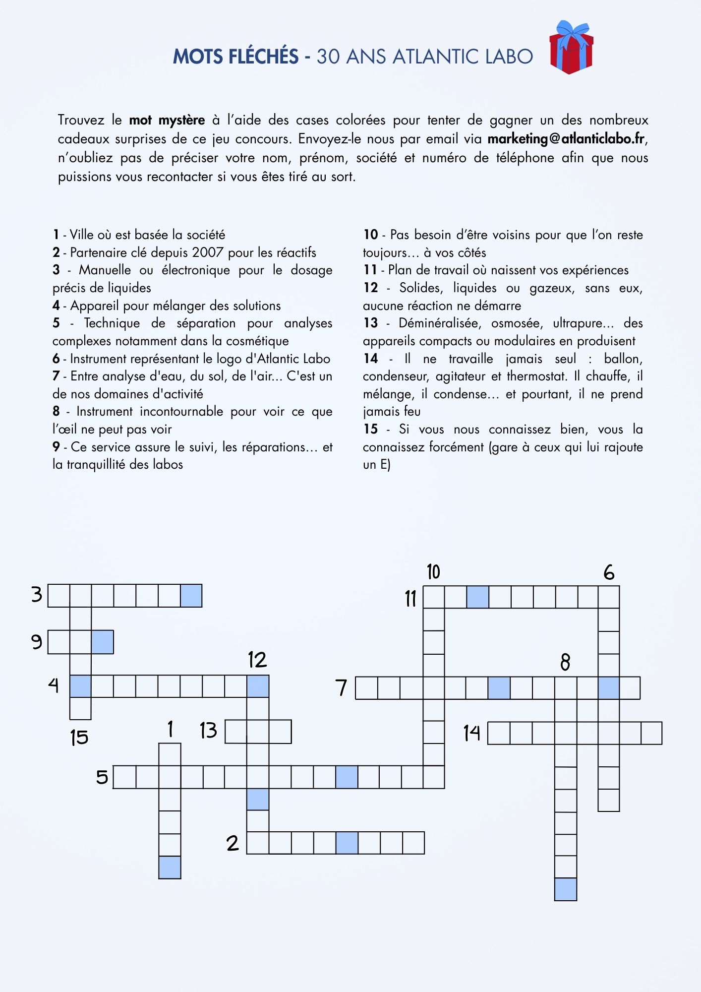 Pour participer, rien de plus simple ! Jouez aux mots fléchés Atlantic Labo ci-dessous et tentez de remporter l’un des lots mis en jeu.