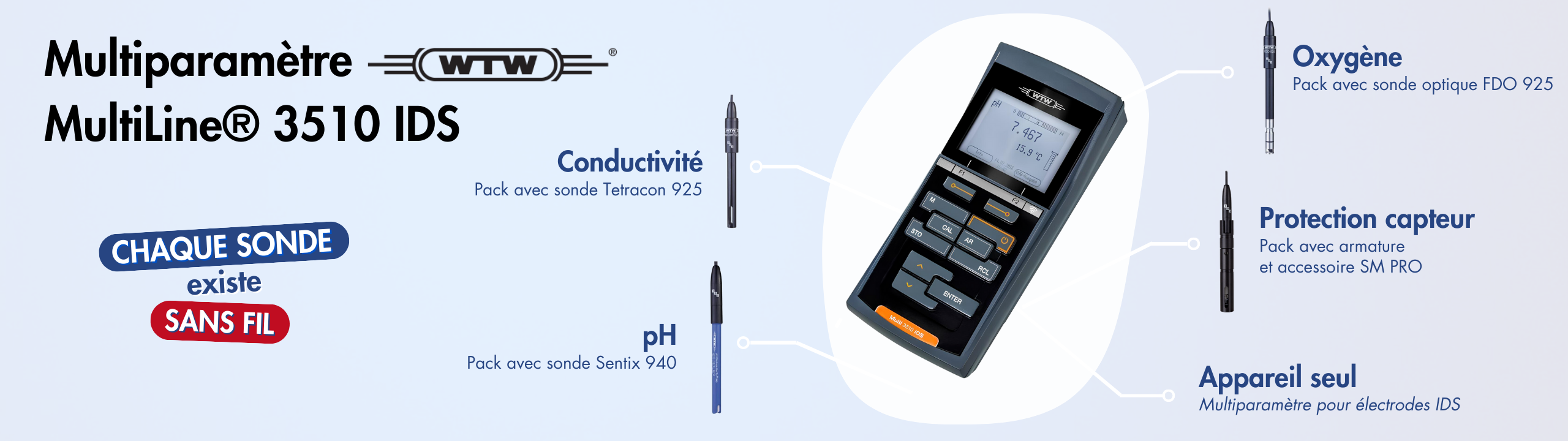 Le MultiLine® 3510 IDS de WTW est un appareil de mesure multiparamétrique portable conçu pour les mesures de qualité de l’eau sur le terrain et en laboratoire mobile. Il repose sur la technologie IDS (Intelligent Digital Sensors), garantissant une excellente fiabilité des mesures, une grande simplicité d’utilisation et une parfaite traçabilité des données.